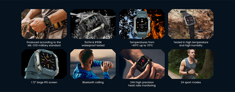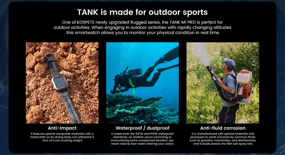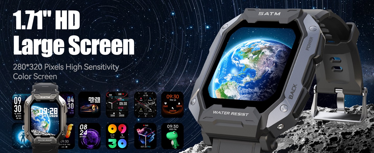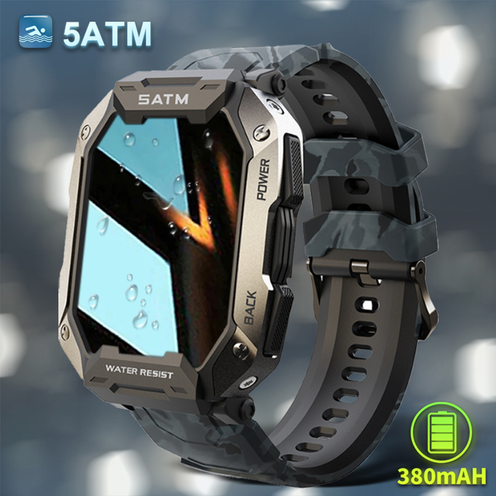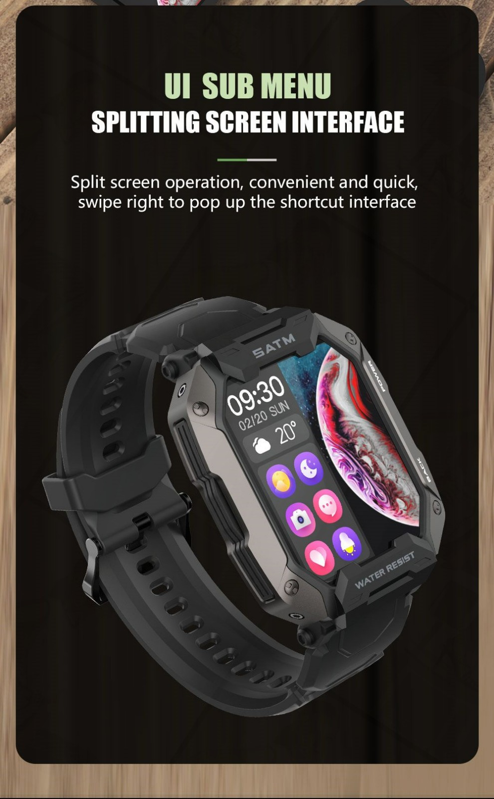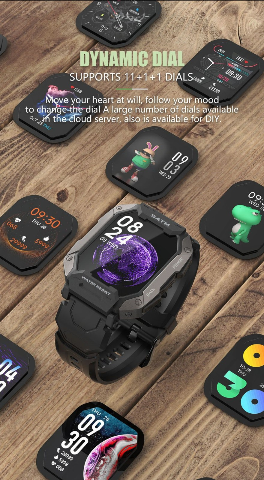 2023 Men Carbon Black Outdoor Waterproof Heart Rate Blood Oxygen Smartwatch