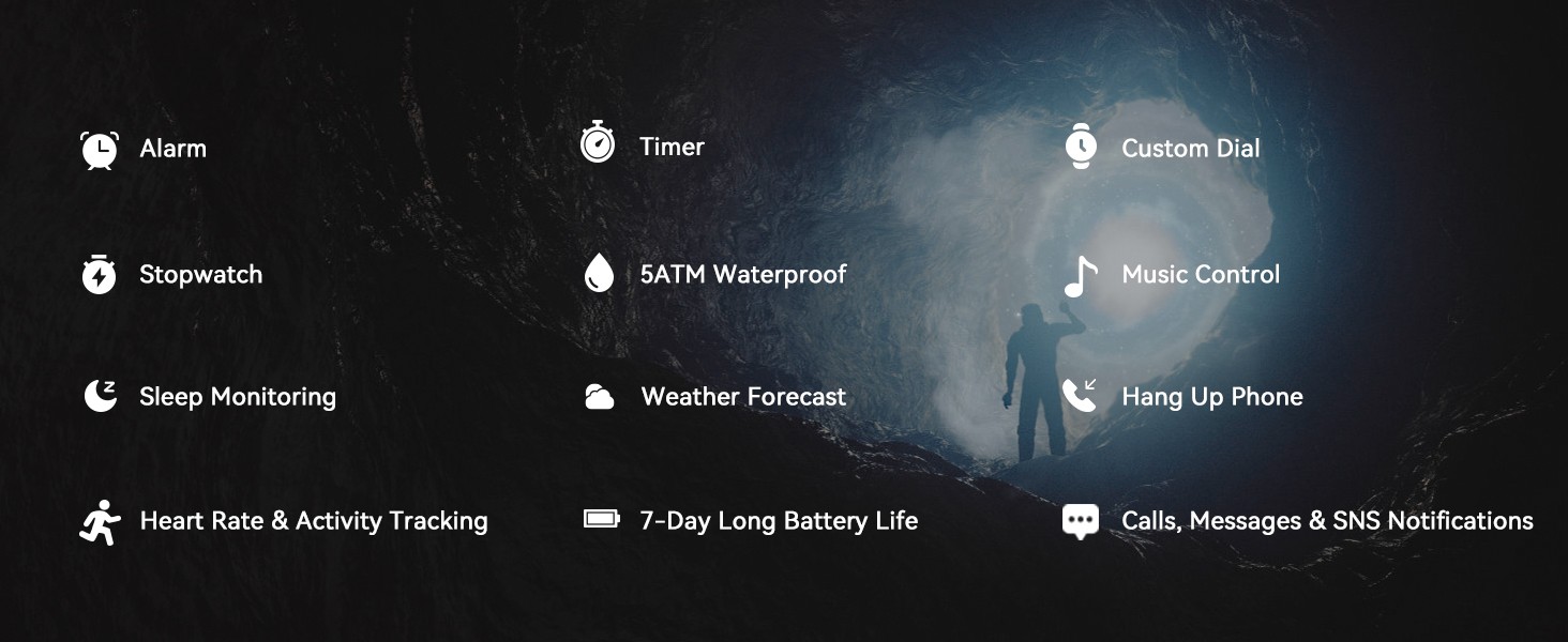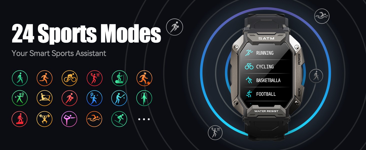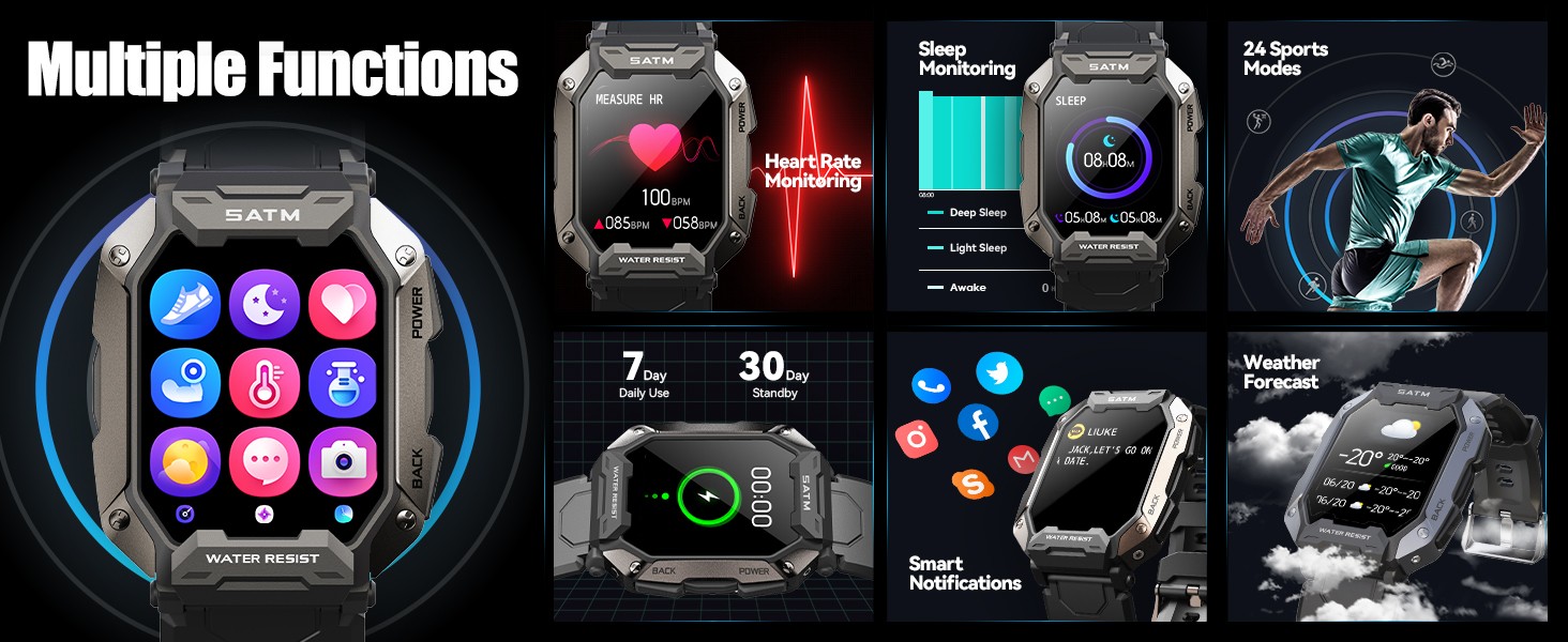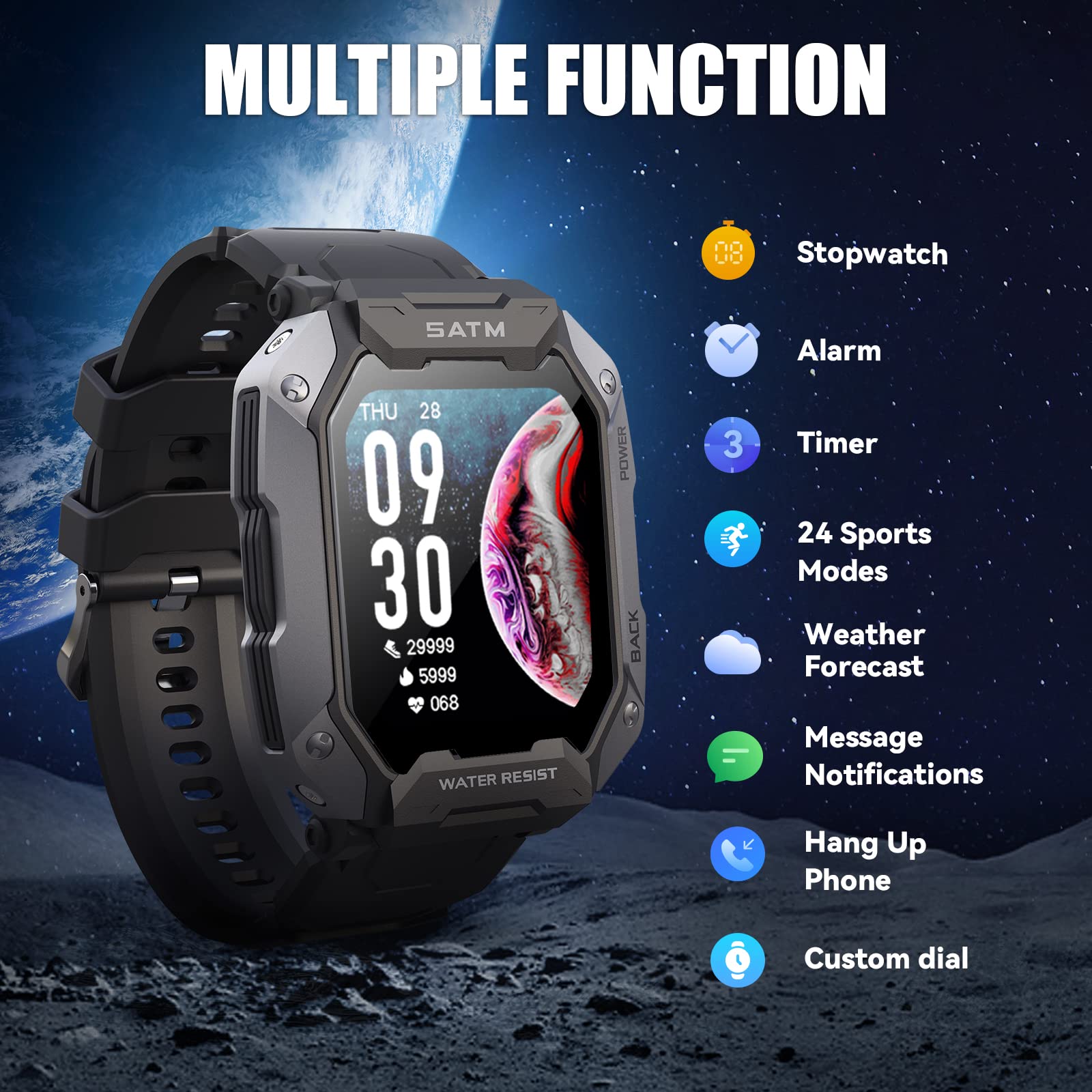 2023 Men Carbon Black Outdoor Waterproof Heart Rate Blood Oxygen Smartwatch